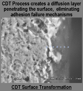 | The CDT process converts the surface of carbides without applying a dissimilar material. The result is that graphite and nanocrystalline diamond are synthesized from the material constituents already sintered into the carbide. The resulting surface constituents are covalently bonded in place, and do not flake off in running. |